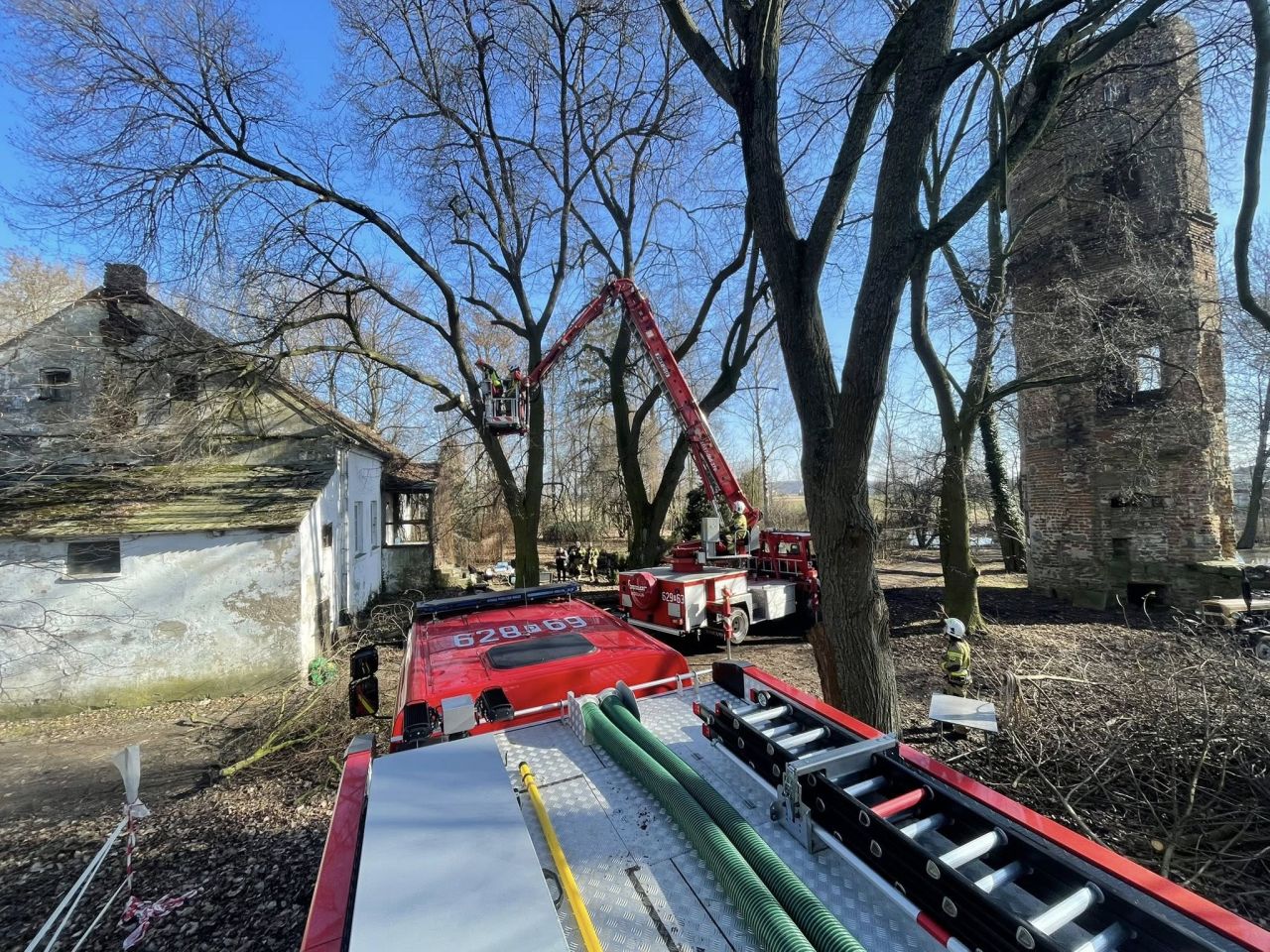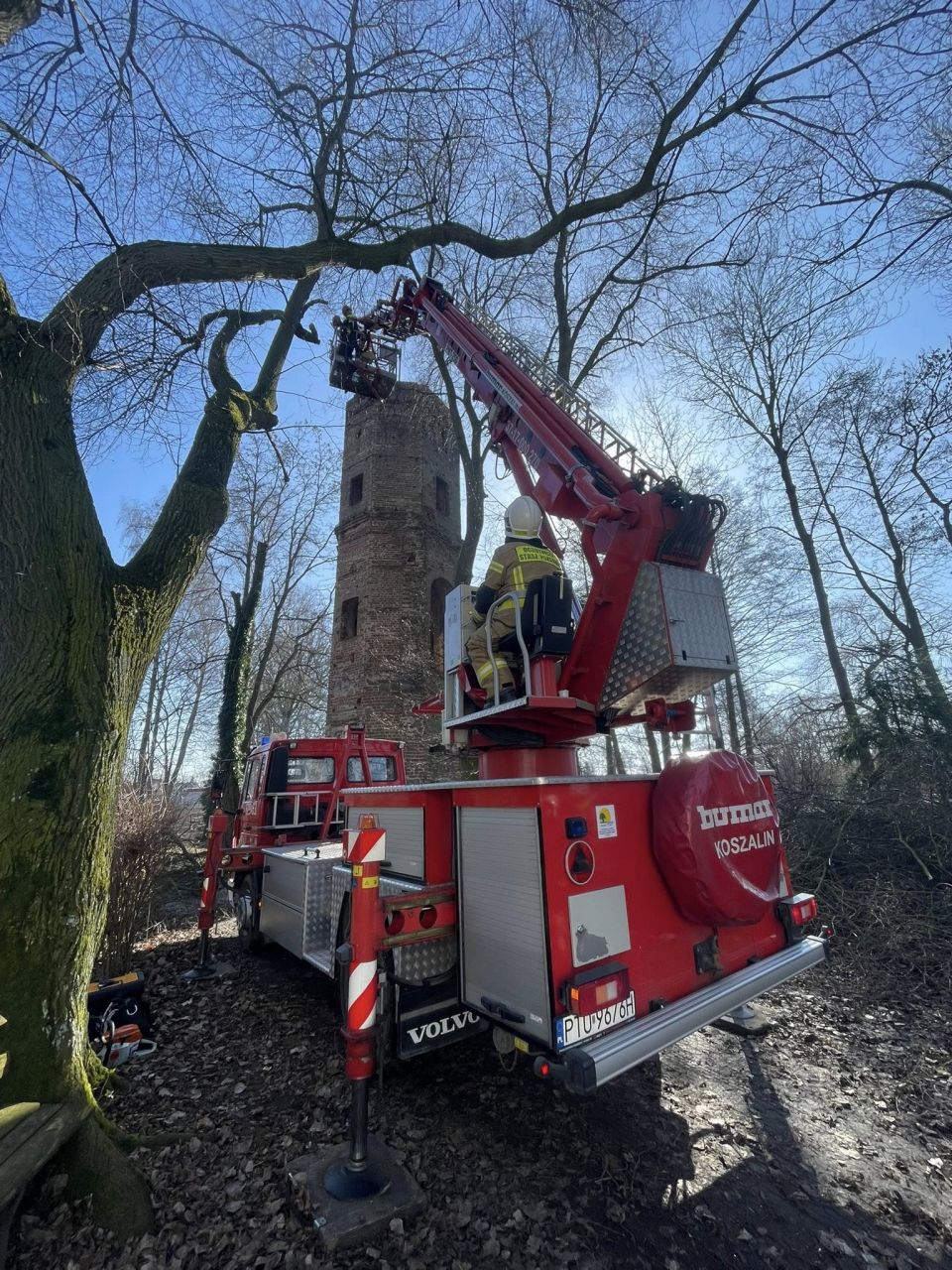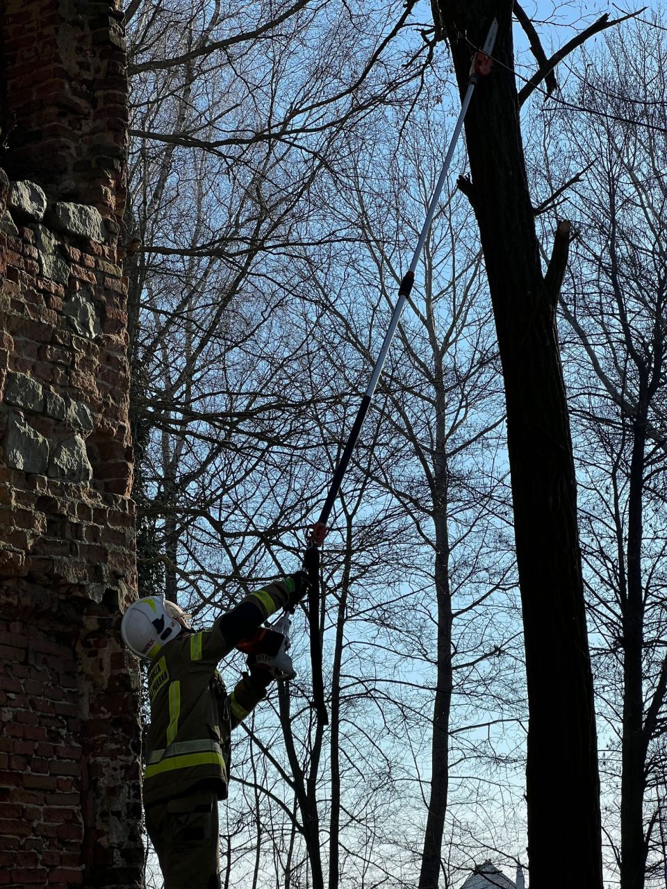 Akcja pod kryptonimem „Baszta 2026” pomogła w uprzątnięciu i oczyszczeniu terenu wokół zabytkowej baszty z drzew i gałęzi zagrażających historycznej budowli, ale też pozwoliła strażakom na przypomnienie zasad bezpiecznej pracy z pilarkami do drewna, doskonalenie technik ścinania drzew oraz poznanie i utrwalenie zasad pracy z wykorzystaniem podnośnika koszowego.
