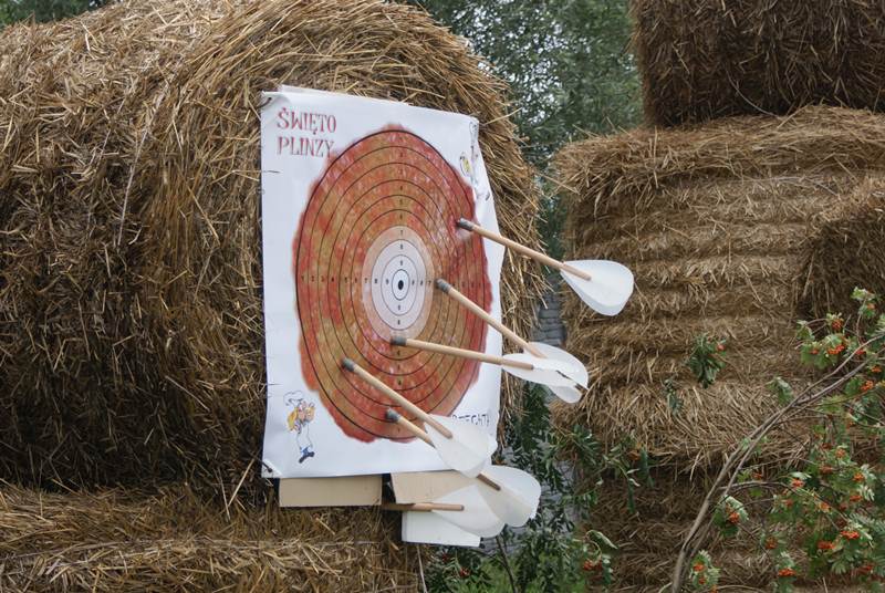 Gości pierwszego dnia „Święta Plinzy” od stołów skutecznie odciągały konkursy. Dwudziestu śmiałków mogło zmierzyć się w rzucie potężną lotką do celu, który tym razem przyjął oczywiście formę plinzy. Goście festynu miotali, rzucali i ciskali z rozmaitymi efektami, a najskuteczniejszą techniką trafiania do plinzy wykazał się Jan Błazełek z Woli Piekarskiej — zwycięzca nieprzypadkowy, bo zeszłoroczny triumfator Rzutu lotkami do Słomianej Baby. Organizatorzy festynu przygotowali oprócz tej nieco militarnej konkurencji także bardziej humanitarne zadanie, polegające na karmieniu sąsiada. Proces odżywiania partnera plinzą utrudniały i czyniły zabawniejszym zawiązane oczy. Dzieci także mogły być w dobrych humorach, za sprawą przygotowanego dla nich placu zabaw.