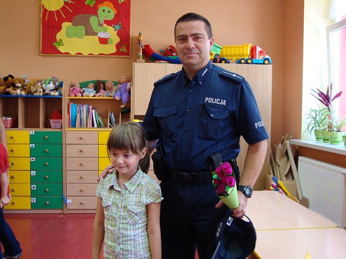 Goście poruszyli również temat zachowania się podczas ataku psa, dzieci przećwiczyły obronną pozycję zwaną "żółwiem". Policjanci przestrzegali przedszkolaków przed nieznajomymi osobami, z którymi nie należy rozmawiać.