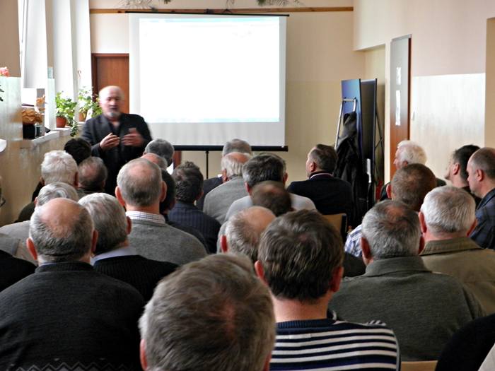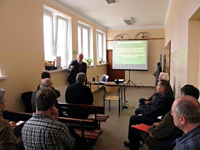 Ostatnim z wykładowców był mgr inż. Sławomir Gacka z Krajowego Centrum Mikroorganizmów firmy ProBiotics Polska. Jego niezwykle ciekawa prelekcja poświęcona była nie tylko pszczelarstwu, ale także powiązanemu z nim rolnictwu. Te dwie dziedziny są przecież niejako na siebie skazane, przynosząc sobie nawzajem korzyści. Prelegent omówił ogromną rolę jaką w przyrodzie odgrywają pożyteczne mikroorganizmy, warunkujące między innymi optymalne warunki rozwoju roślin i zwierząt. Przypomniał także , że gleba mineralna - pozbawiona próchnicy, a tym samym zawierająca niewielkie ilości mikroflory, najczęściej o dominacji szkodliwej wobec roślin, nawet bardzo zasobna w azotany, fosforany, związki potasu, magnezu, wapnia i inne, często o odpowiednim pH, jest coraz trudniejsza do uprawy i nie tworzy właściwych warunków do życia roślin. Pożyteczne mikroorganizmy przywracają w mikroflorze gleby najbardziej optymalne warunki rozwoju uprawianych roślin. Przede wszystkim regenerują glebę, odtwarzając jej siłę rodną, przyspieszają rozkład materii organicznej, aktywizują i stabilizują procesy próchnicotwórcze. Równie ważne są w gospodarce pasiecznej – pomagają przywrócić naturalną równowagę w ulu, przyczyniając się tym samym do poprawy zdrowotności pszczół.