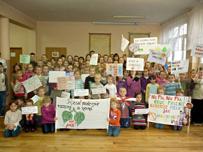 Wydarzenie w tej placówce oświatowej opierało się na wielu formach działania. Zadaniem dla uczniów klas IV -VI było przygotowanie wiersza lub rymowanki na konkurs „Dlaczego nigdy nie zapalę papierosa?". Dzieci z klas I-III oraz przedszkolaki zajęły się happeningiem. Zaniedbana nie została również warstwa informacyjna wydarzenia – w salach lekcyjnych pojawiły się gazetki ścienne, informujące o szkodliwości palenia.