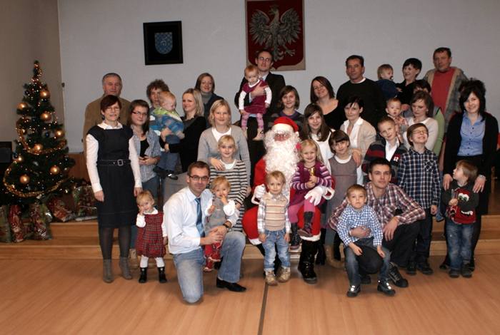 Zanim jednak Mikołaj zabrał się do obdarowywania najmłodszych, najpierw Wójt Gminy przywitał małych gości i życzył im dużo szczęścia. Później w centrum uwagi był już tylko Mikołaj. Wszystkim dzieciom - i tym malutkim, które zaczynają dopiero stawiać swoje pierwsze kroki, i tym starszym, wyższym od swoich rodziców - wręczył słodkie upominki. Jak przystało na świąteczny czas, zewsząd rozbrzmiewała kolęda, a radosna aura rozprzestrzeniała się na wszystkie strony. Słodki smak czekolady i zapach pomarańczy sprawił, że Mikołajki upłynęły w niezwykłej atmosferze, sprawiając radość nie tylko dzieciom, ale i dorosłym, którym magia świąt również się udzieliła.