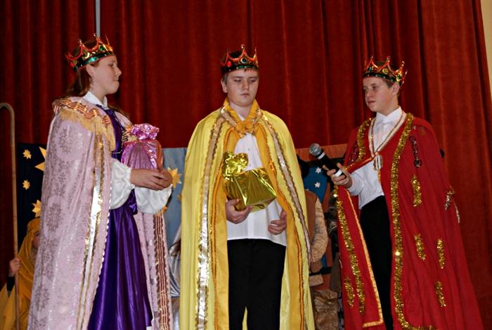 Ze sceny Domu Parafialnego rozbrzmiewały piękne kolędy, połyskiwały srebrzyste anielskie włosy i rozpływał się czar jasełek. Cztery razy kurtyna podnosiła się i opadała, a na scenie pojawiły się cztery grupy teatralne. Były to dzieci ze Szkół Podstawowych w Wyszynie, Chylinie, Małoszynie i Władysławowie. Choć historia przez nie opowiadana była ta sama, za każdym razem wywoływała wzruszenie. Za każdym razem też była odmiennie ukazywana. Jedni podkreślali podniosły charakter bożonarodzeniowego przedstawienia, drudzy stawiali na ruch sceniczny i ekspresję przekazu, a inni wprowadzali niezwykły nastrój pięknymi kolędami.