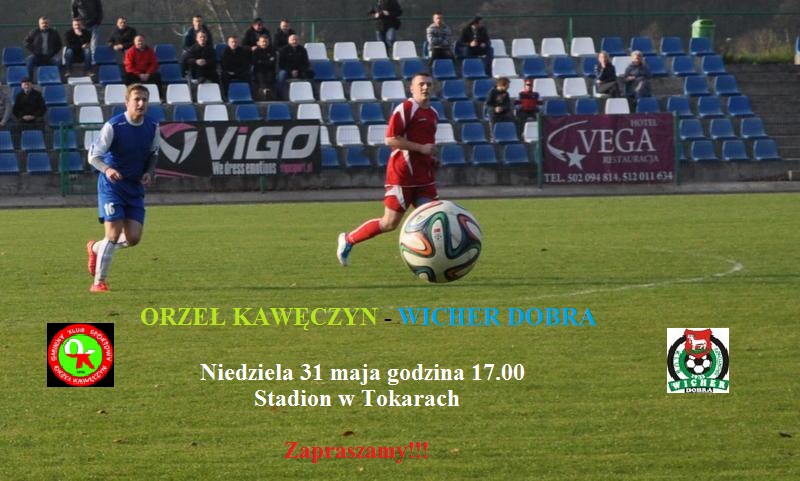 Przypominamy, że już w niedzielę na mieszkańców dwóch sąsiadujących ze soba gmin czekają spore emocje sportowe. Wszystko za sprawą meczu piłki nożnej pomiędzy drużynami Orzeł Kawęczyn i Wicher Dobra. Spotkanie rozpocznie się o godz. 17:00 na stadionie w Tokarach. Zapraszamy.