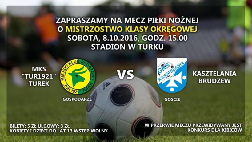 Już jutro na stadionie w Turku rozegra się mecz piłki nożnej o Mistrzostwo Klasy Okręgowej. Na boisku zagrają piłkarze z MKS „TUR1921” TUREK i GKS KASZTELANIA BRUDZEW.