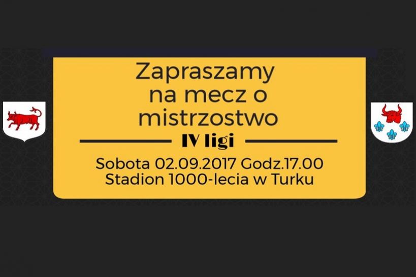 Zapraszamy na kolejny mecz piłki nożnej w ramach walki o mistrzostwo IV ligi. W sobotę 2 września na stadionie 1000-lecia w Turku zmierzą się MKS Tur 1921 Turek i Ostrovia 1909 Ostrów Wielkopolski. Początek spotkania o godz. 17:00. W przerwie meczu przewidywany jest konkurs dla kibiców. Cena biletu to jedyne 6 zł, ulgowy 4 zł. Kobiety i dzieci do lat 13 – wstęp wolny.