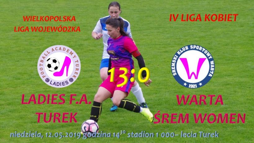 Podczas czwartej kolejki IV ligi kobiet wielkopolskiej ligi wojewódzkiej nasze lokalne piłkarki mierzyły się z drużyną z Warty. Mecz okazał się jednostronnym widowiskiem. Podczas spotkania do bramki przeciwniczek trafiały: Dominika Kubka (4), Julia Olek (3), Eliza Dorabiała (2), Andżelika Łukaszewska (1), Marta Sadowska (2). Reprezentantki Warty Śrem dwukrotnie strzeliły sobie gola samobójczego. W tym meczu zawodniczki zagrały w nowych dresach ufundowanych przez firmę „Pinus. Po czterech rozegranych kolejkach Ladies Football Club Turek zajmuję pierwsze miejsce w tabeli ligowej i straciły tylko jedną bramkę to naprawdę świetny wynik.