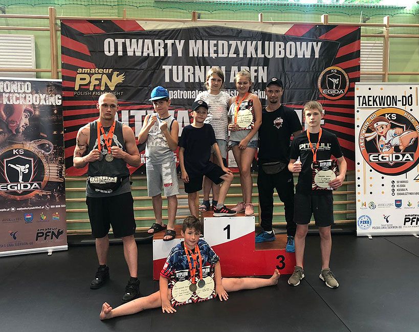 Najmłodszym członkiem kadry naszej reprezentacji był Aleksander Piaseczny. 9 latek z Żuk nie miał sobie równych w konkurencjach uderzanych i wszystkie walki wygrał z kolosalną przewagą. Ostatecznie w swojej kategorii wiekowej w formule Point Fighting zajął pierwsze miejsce. Jako małolat, brał udział również w walkach na piankowe pałki, w finale ulegając miejscowemu zawodnikowi. Kolejnymi reprezentantami naszej drużyny byli nieco starsi już nastolatkowie, startujący w walkach Piont Fighting.