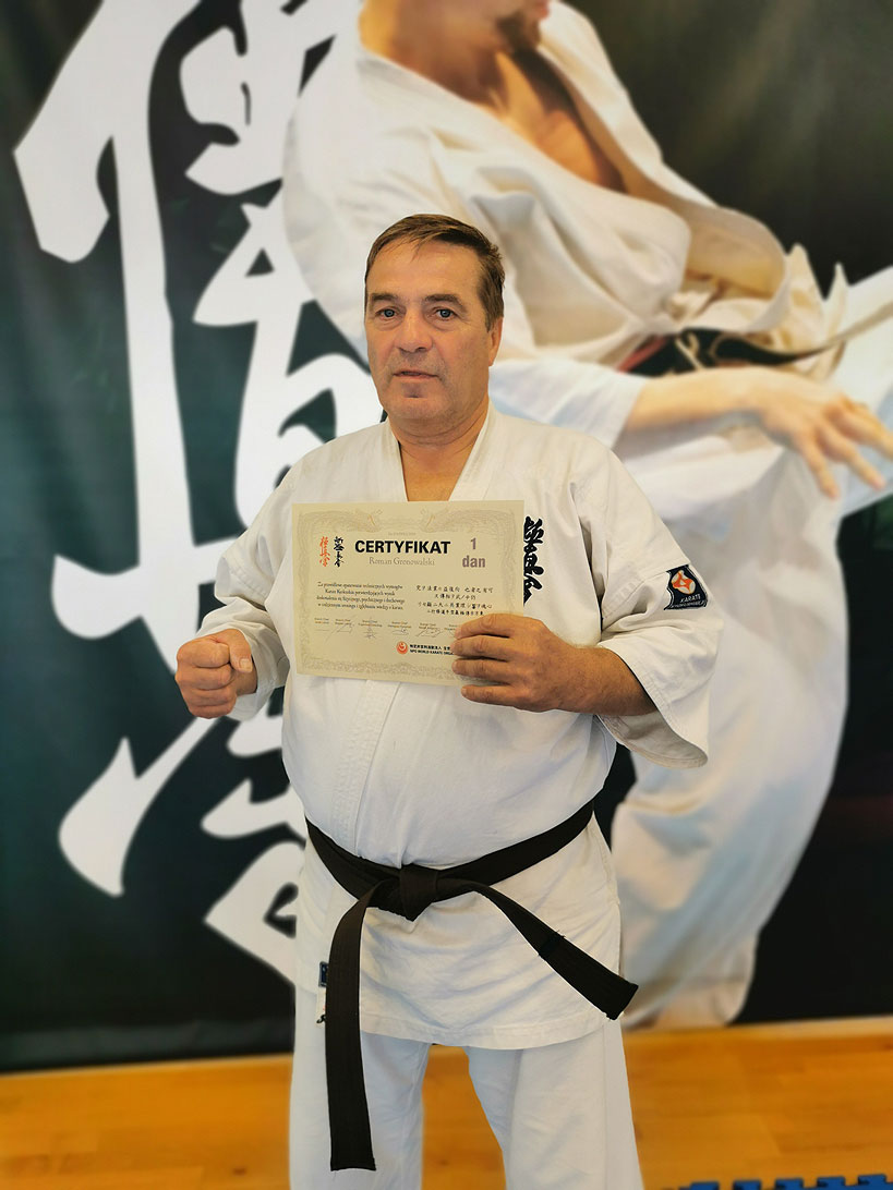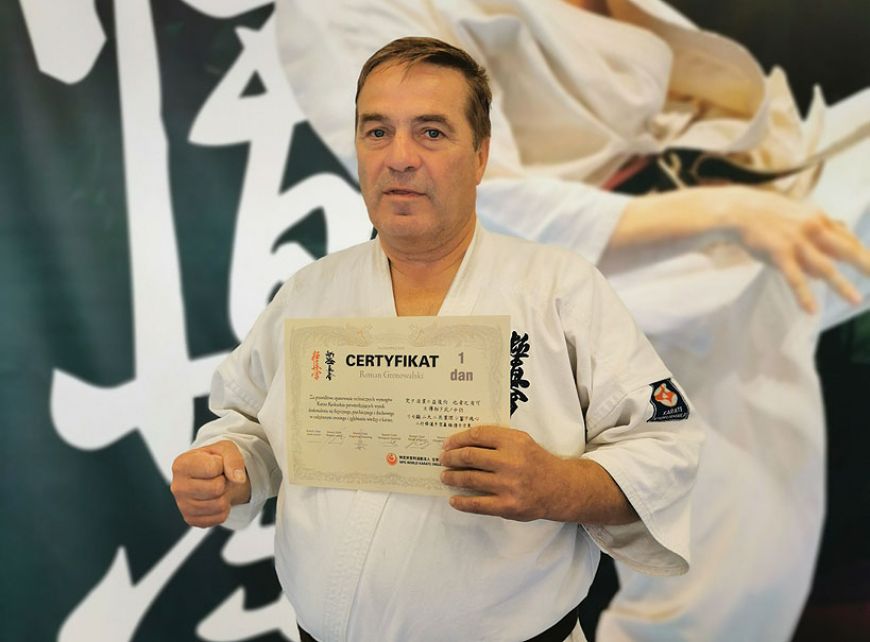 Egzamin odbył się pod nadzorem komisji egzaminacyjnej składającej się z przedstawicieli World Karate Organization Japan ( największej organizacji karate na świecie ) i nie było lekko. Teraz zostało tylko oczekiwanie za certyfikatem i czarnym pasem z wyhaftowanym imieniem i nazwiskiem z Japonii, potwierdzającym zdanie egzaminu. Sensei Roman Gronowalski treningi karate kyokushinkai rozpoczął w 1981 roku, uczestniczy w najważniejszych wydarzeniach sportowych karate w kraju, posiada uprawnienia sędziego Okręgowego Związku Karate w Poznaniu, obecnie jest na zasłużonej emeryturze.