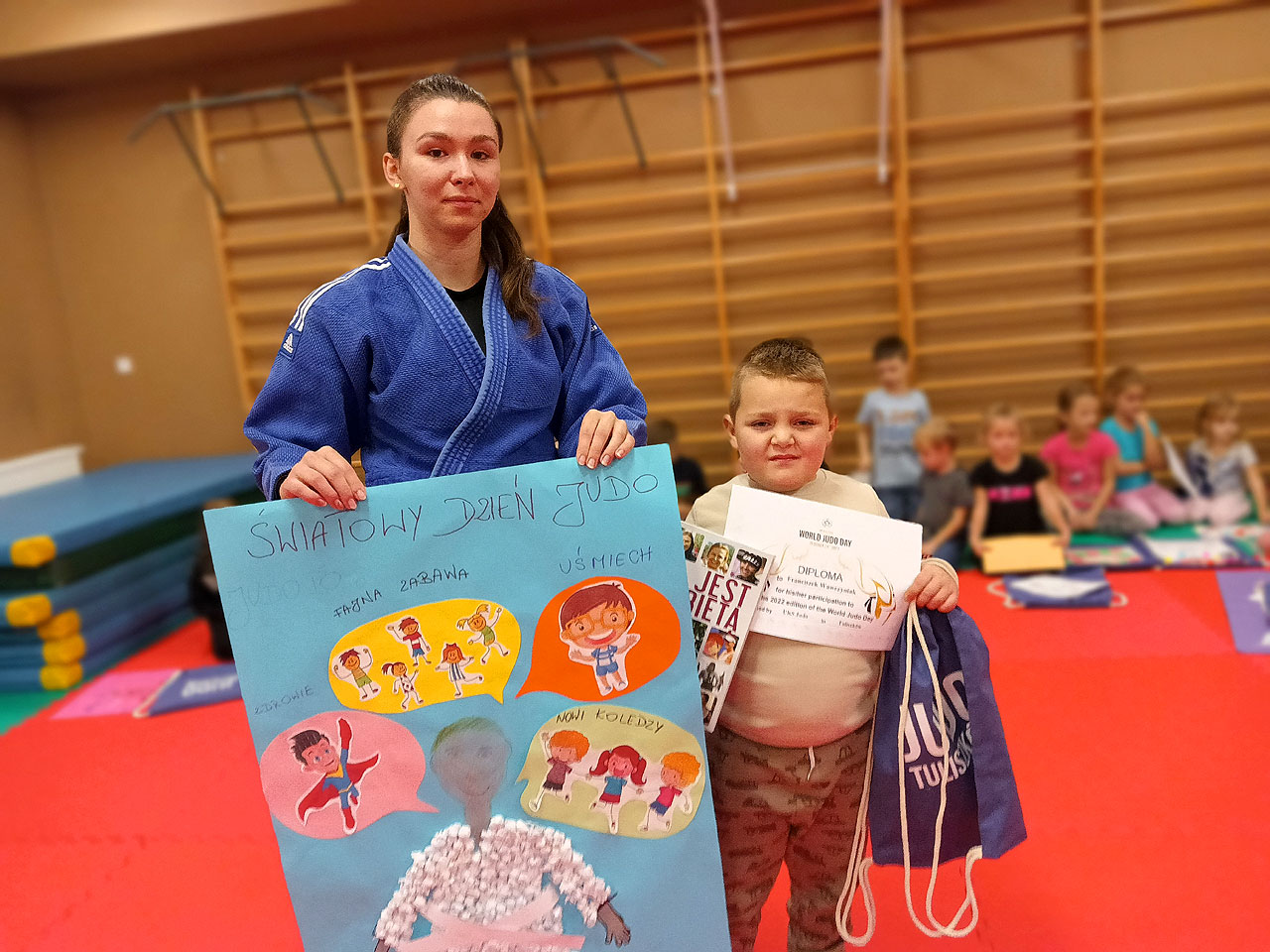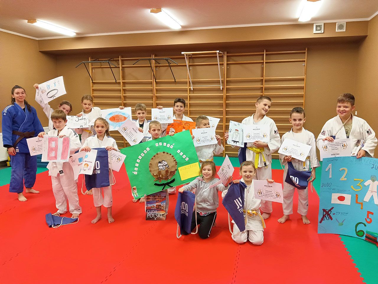 Laureaci konkursu otrzymali książki, puzzle i worki klubowe. Na zajęciach nie zabrakło oczywiście gier, zabaw, gimnastyki oraz technik Judo.