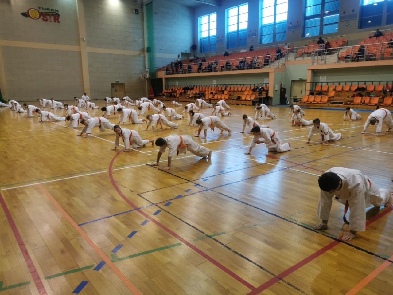 Blisko setka zdających przez trzy godziny zaliczała testy karate kontaktowego, testy sprawnościowe i najtrudniejszy test 20 walk od niebieskiego pasa – wszystko w grupach stopni szkoleniowych, określonych w wymogach Światowej Organizacji Karate z Japonii. Komisję egzaminacyjną stanowili trenerzy z turkowskiego klubu: shihan Dariusz Jasiakiewicz 5 dan, Daniel Pakuła 3 dan, Waldemar Mila 2 dan, Robert Łajdecki 2 dan, Tomasz Stankiewicz 2 dan, Dariusz Szymczak 1 dan.