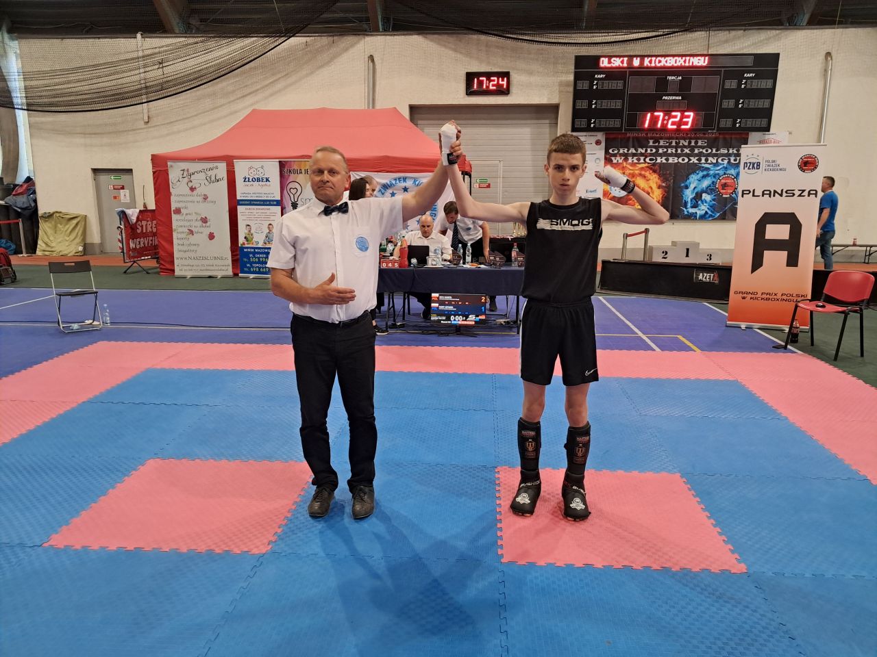 Bezkonkurencyjny w swojej kategorii okazał się klubowy „NINJA” – Franek Trzmielewski. W kategorii gdzie było 15 zawodników okazał się „Najlepszy z najlepszych”. Wszystkie swoje pojedynki zwyciężył przed czasem. W kategorii dzieci i kadetów we wszystkich formułach walki ograniczona jest siła technik – nie wolno nokautować. Jedyna możliwość, w której zawodnik może zwyciężyć przed czasem jest różnica zdobytych punktów (by wygrać musi być ich 20 na plusie). W pierwszym pojedynku Franek wygrał w pierwszej rundzie. W walce numer dwa – w rundzie drugiej. W półfinale chyba przeciwnik przestraszył się Franka i nie wyszedł do pojedynku – Ninja wygrał przez walkower. W finale w drugiej odsłonie pojedynku – wygrana przed czasem. Pięknie było patrzeć z jaką łatwością ten zawodnik rozprawił się ze swoimi przeciwnikami.