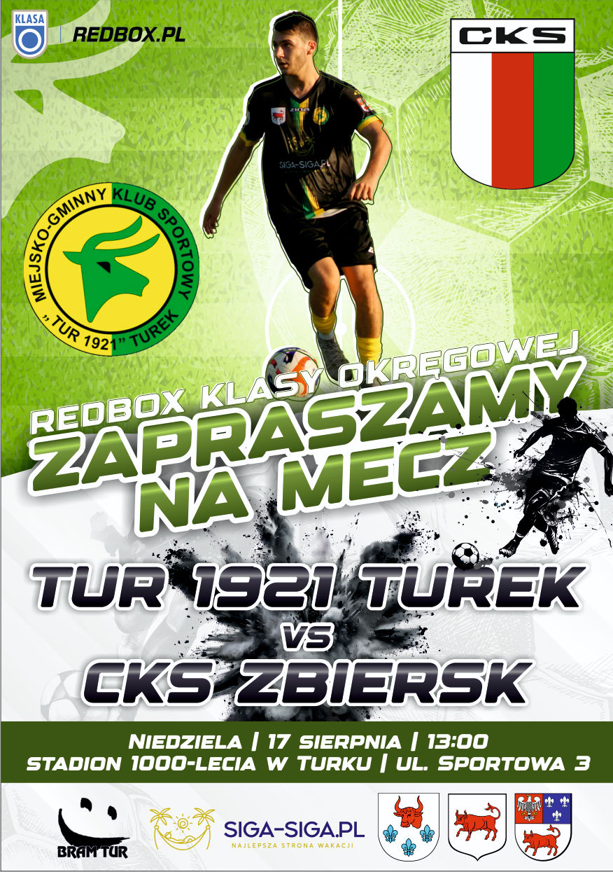 Po udanym początku sezonu, zawodnicy Tur 1921 Turek staną do walki o kolejne ligowe punkty, a ich rywalem będzie CKS Zbiersk. Mecz rozpocznie się o godzinie 13:00 na stadionie przy ulicy Sportowej 3.