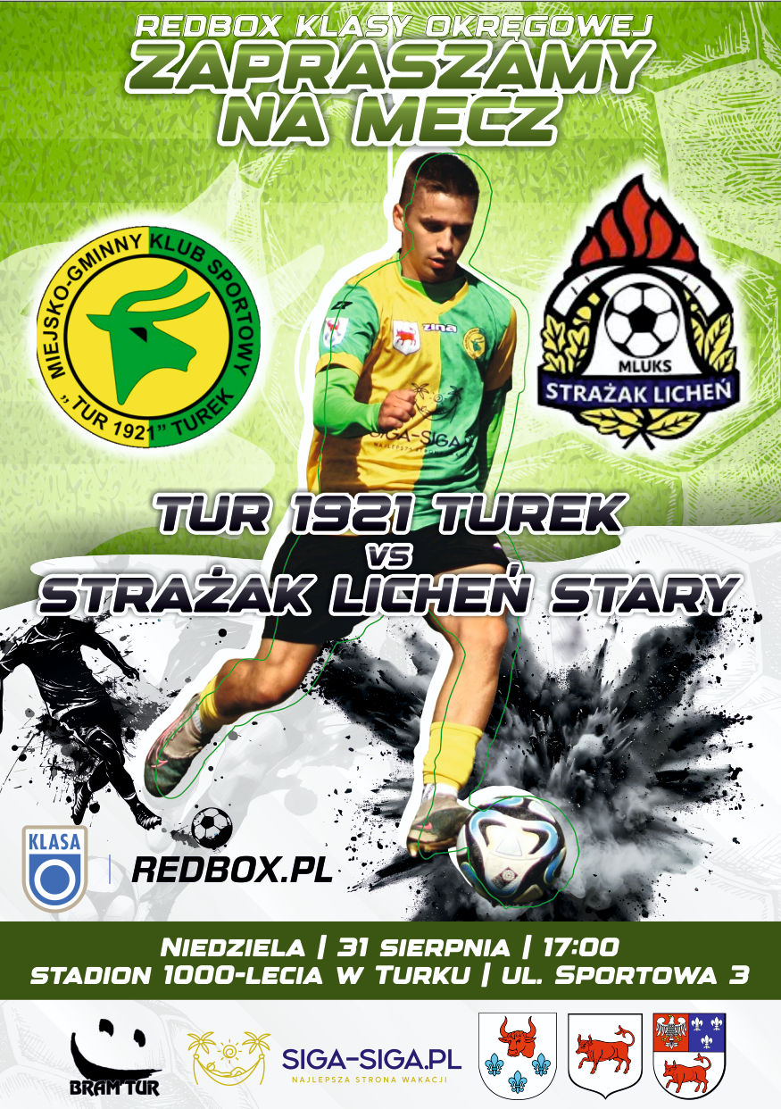 Spotkanie Tur 1921 Turek – Strażak Licheń Stary odbędzie się w niedzielę, 31 sierpnia 2025 roku, o godz. 17:00 na Stadionie 1000-lecia w Turku przy ul. Sportowej 3. Czy Tur wykorzysta własne boisko i zrzuci Strażaka Licheń Stary z pozycji lidera, którą ten utrzymuje dzięki lepszemu bilansowi bramkowemu?