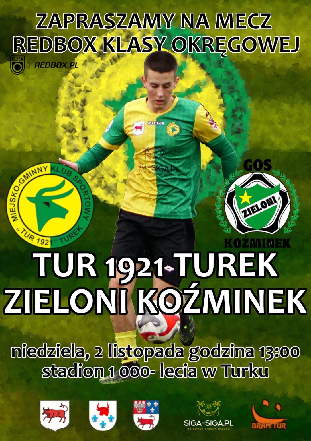 Po bolesnej porażce w derbach z Tulisią, piłkarze Tura 1921 Turek chcą szybko wrócić na zwycięski szlak. W niedzielę, 2 listopada o godzinie 13:00, na Stadionie 1000-lecia w Turku, gospodarze podejmą zespół Zielonych Koźminek.