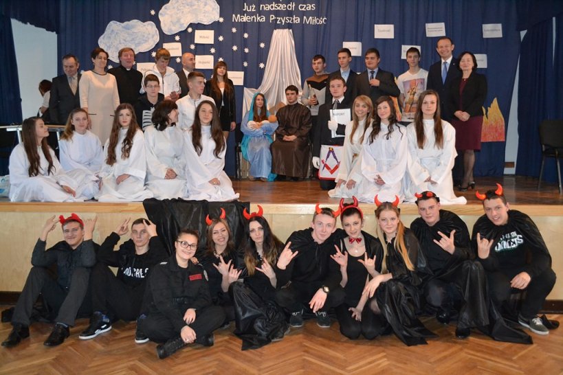 Święta już za pasem, więc w dniu 18 grudnia w auli Zespołu Szkół Rolniczych w Kaczkach Średnich uczniowie tejże placówki mieli okazję obejrzeć tegoroczne przedstawienie jasełkowe, przygotowane przez ich rówieśników pod okiem opiekunów w osobach Elżbiety Krawczyk, ks. Pawła Zalewskiego oraz Dariusza Jasaka, oparte na tekście lirycznym Andrzeja Szewczyka oraz tradycyjnych kolędach. Podczas inscenizacji młodzi widzowie mogli przekonać się, że zło w obecnych czasach przyjmuje postać wielu pokus, rozrywek i używek.