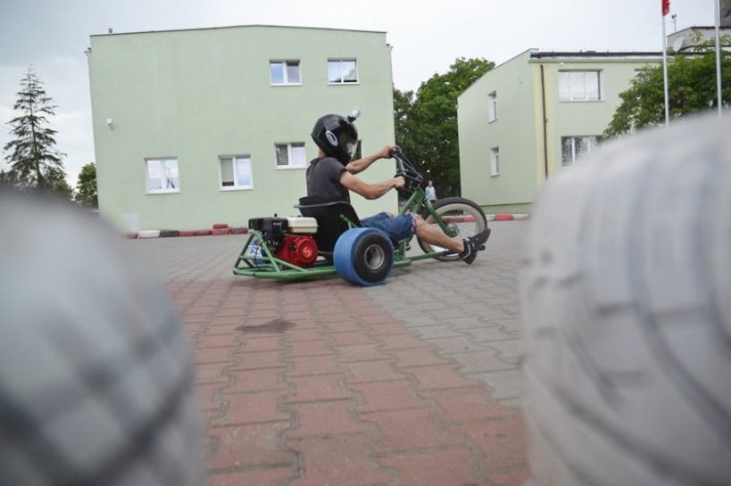 Pojazd ten, określany jako Driftowóz, napędzany przez 6,5 konny silnik doskonale pokazuje w jaki sposób samochód osobowy lub motocykl trójkołowy może zachować się podczas wpadnięcia w niekontrolowany poślizg. Podczas wczorajszej przejażdżki uczniowie zmagali się z nadsterownością i mieli przy tym wiele zabawy. Zobaczcie sami.